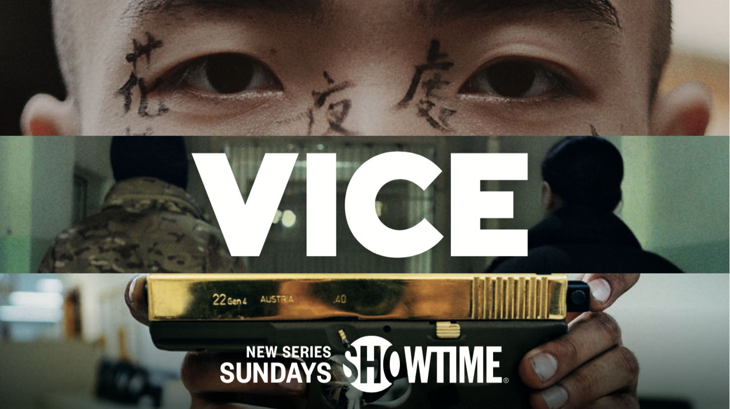 One goal for the packaging was to educate people that VICE (which has previously aired on the Vice television network, on HBO, and on Hulu) is on Showtime now. We tied the logos together into a transitional element, so you never see one without the other. This useful device served another very practical purpose: most episodes of VICE contain multiple segments. We use the VICE/Showtime logo transitions to separate topics in our trailers and episodics.